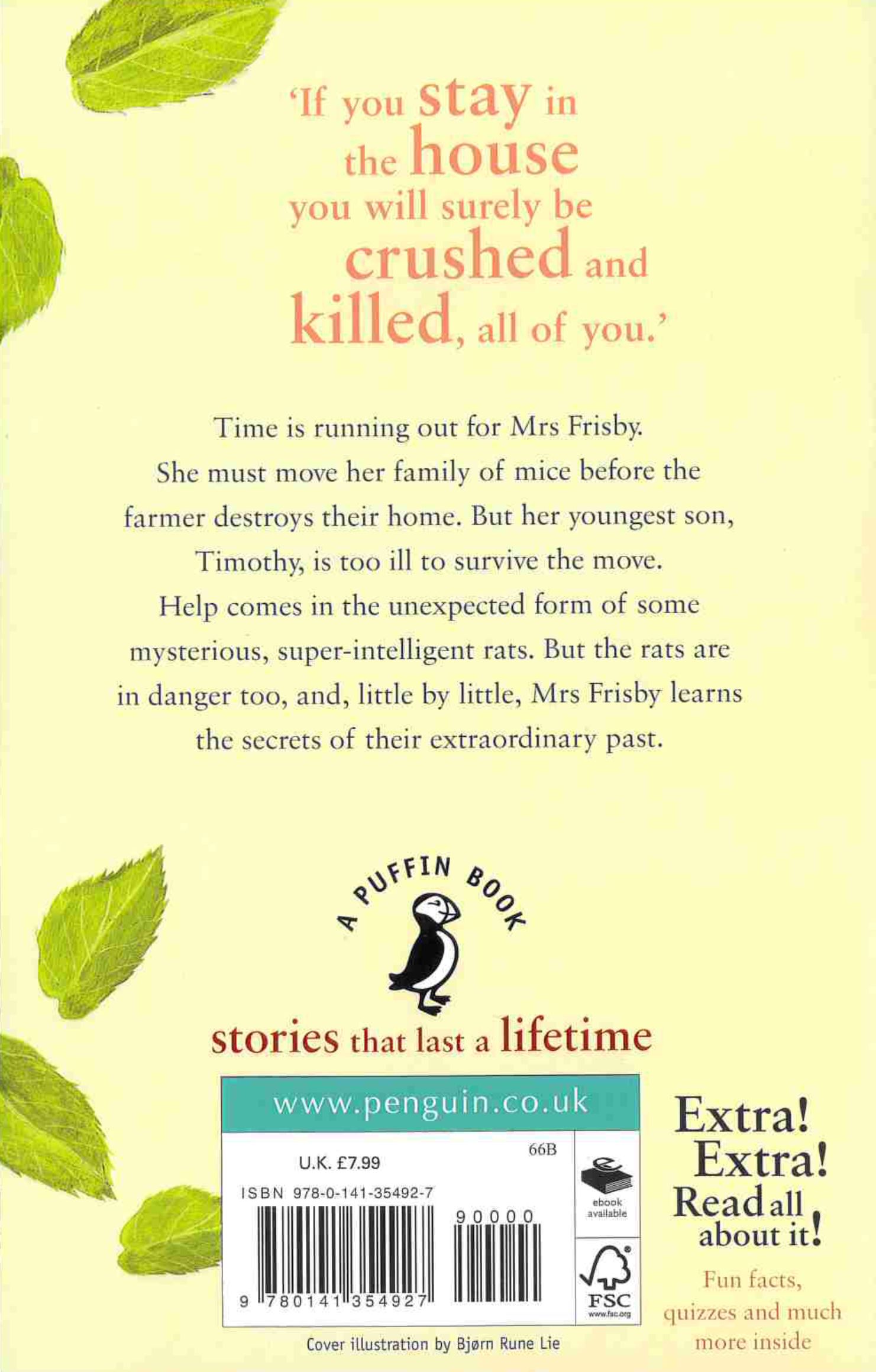 Help comes in the unexpected form of a highly extraordinary breed of super-intelligent rats. The rats of NIMH come up with a brilliant solution to Mrs Frisby’s problem but the rats are in danger too, and little by little Mrs Frisby discovers their extraordinary past . . .