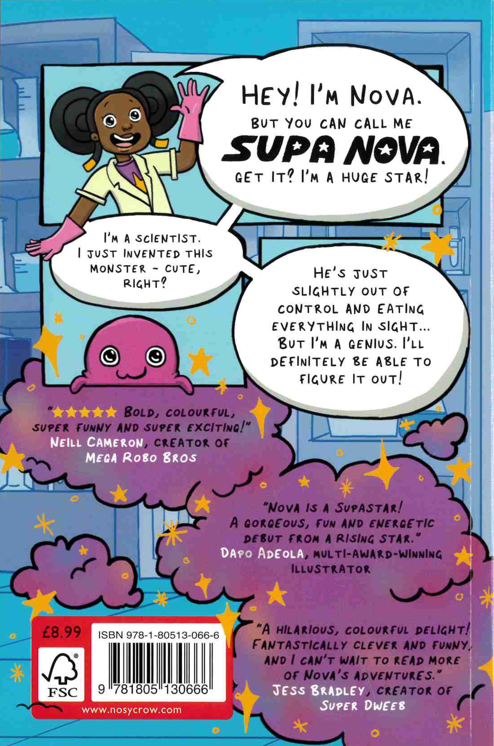 Meet Nova! She’s a scientist. Some people say she’s a genius. Some people even call her Supa Nova – get it? Like a supernova. Basically she’s a huge star, exploding right at you with her adventures!